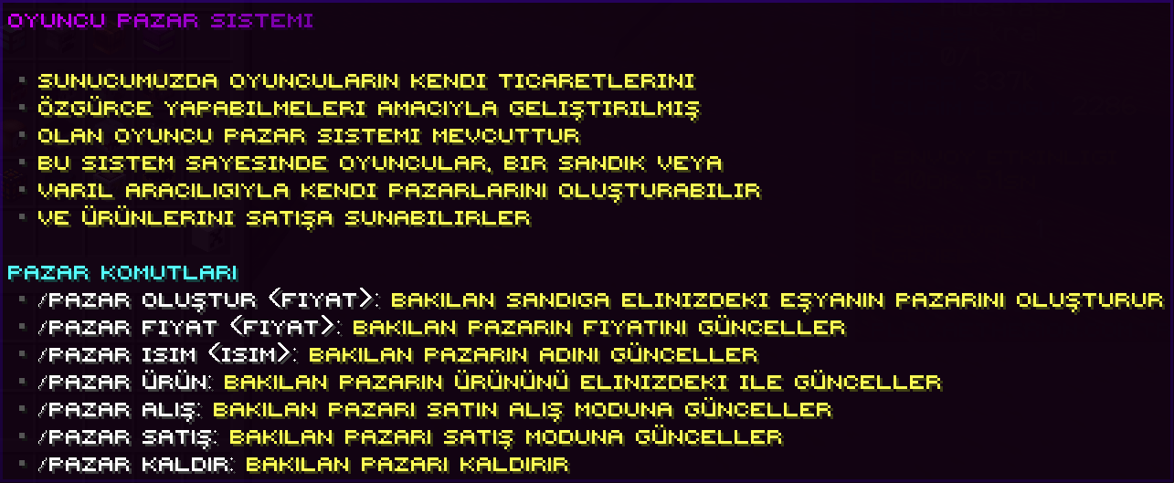 Oyuncu pazarı, kendi ürünlerini satışa koyarak diğer oyunculara doğrudan ticaret yapmanı sağlayan sistemdir. Kendi pazarını kurarak eşya satabilir ve gelir elde edebilirsin.