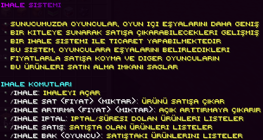 İhale sistemi, oyuncuların eşyalarını tüm sunucuya açık şekilde satışa koyabildiği gelişmiş ticaret sistemidir.