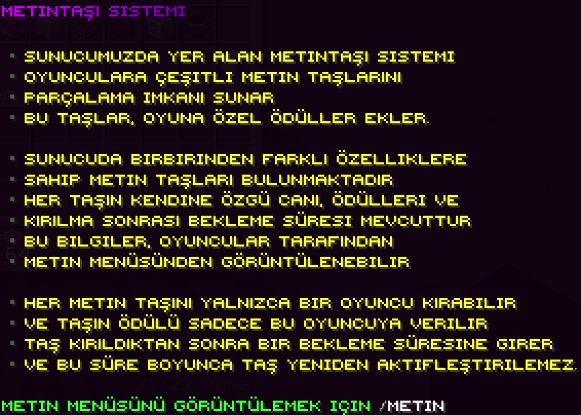 Metin taşlarını /warp metintaşı bölgesinde bulabilirsin.