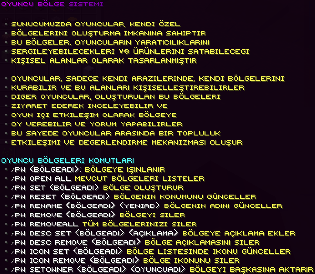 Oyuncu warp sistemi, kendi bölgeni oluşturup diğer oyuncuların ziyaret edebilmesini sağlayan sistemdir. Bu sayede kişisel alanını sergileyebilir ve etkileşim kazanabilirsin.