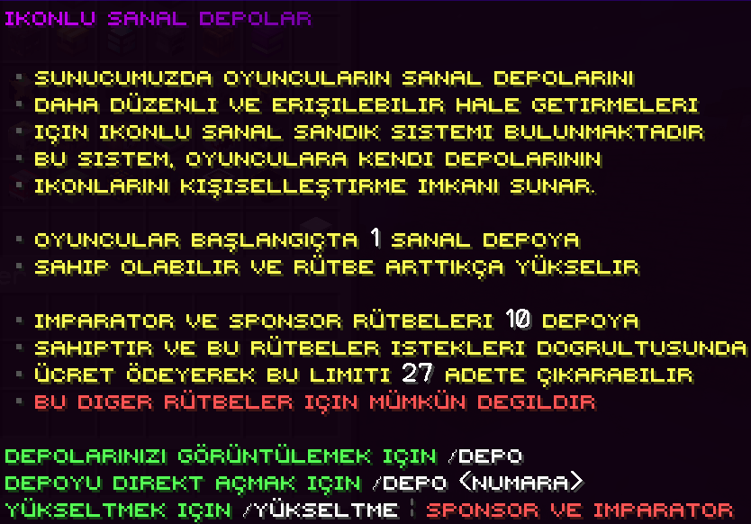 Belirli bir depoyu açmak için: /depo <numara> komutunu kullanabilirsin.