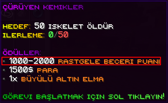 Her görev sana belirli miktarda beceri puanı (skill point) kazandırır.