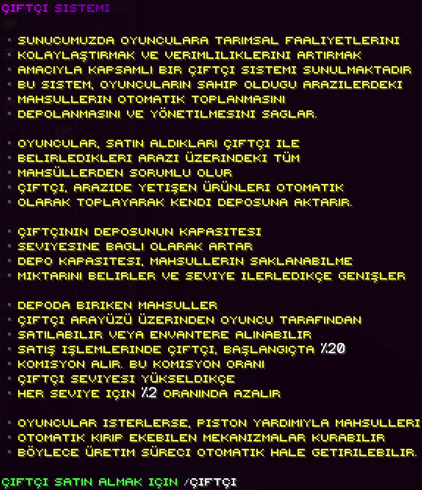 Çiftçi sistemi, arazindeki mahsullerin otomatik olarak toplanmasını ve depolanmasını sağlayan sistemdir. Bu sistem sayesinde tarım tamamen otomatik hale getirilebilir.