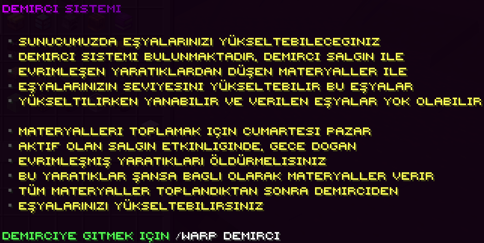 Demirci sistemi, eşyalarını özel materyaller kullanarak yükseltebildiğin sistemdir.